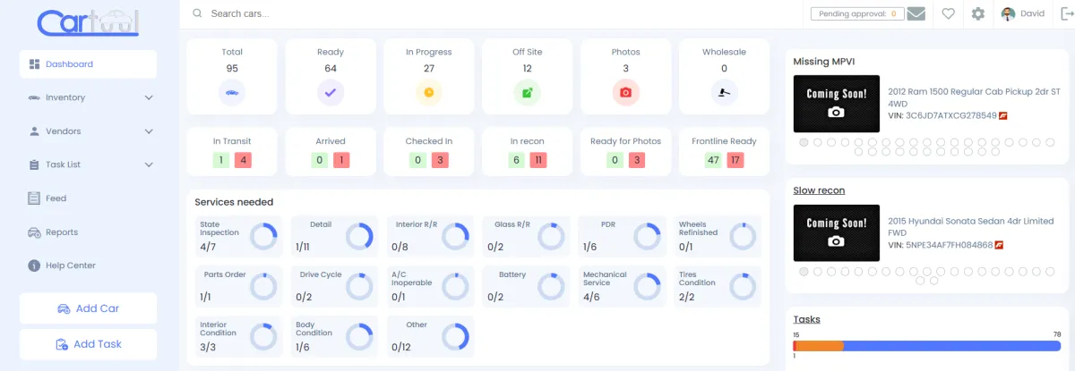 By streamlining workflows and reducing delays in your reconditioning process, Cartuul helps you turn cars around faster and maximize profitability. In fact, according to current NADA data, delays in the reconditioning process can cost dealerships between $32 and $70 per day. For a dealership that sells just five cars per month, reducing the average reconditioning time by even a single day can easily offset the entire monthly investment in Cartuul.